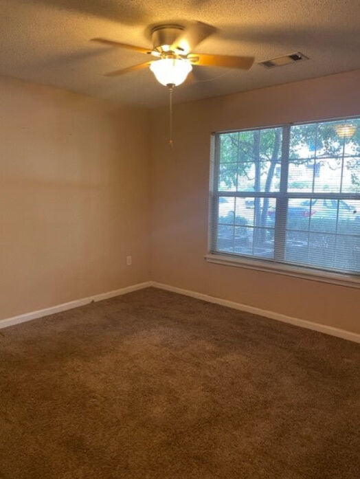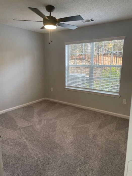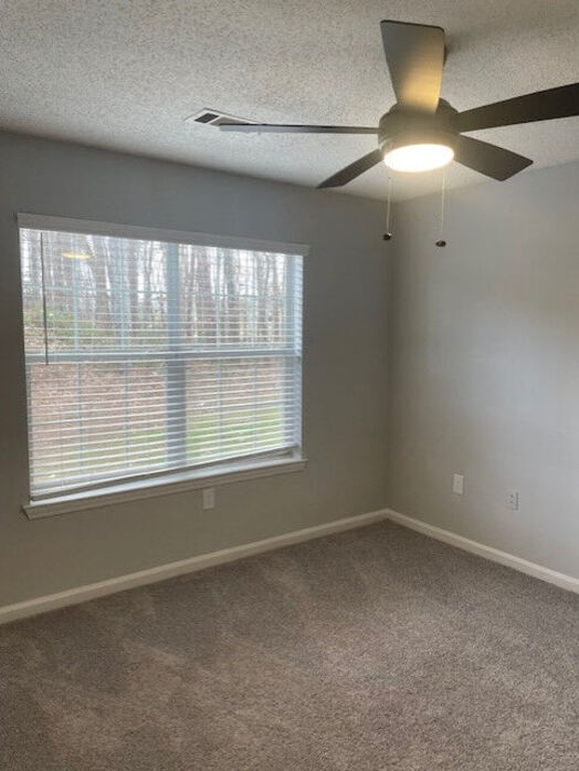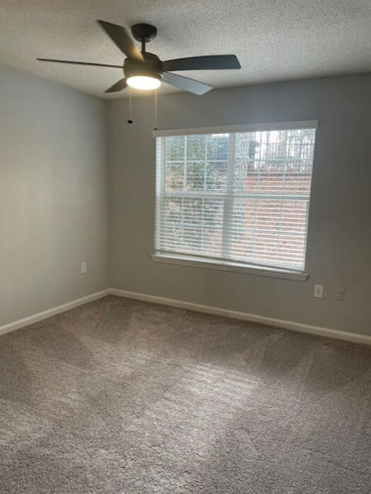The Everest floorplan is the largest and most expansive layout at Lost Mountain, offering 1,362 square feet of thoughtfully designed living space. This three‑bedroom, two‑bath apartment features an open and inviting layout with wood‑style flooring, crown molding, soft neutral tones, and abundant natural light throughout the main living areas. The spacious kitchen is designed for both function and style, showcasing white cabinetry, quartz‑style countertops, a classic subway tile backsplash, black appliances, and a generous breakfast bar that opens seamlessly into the living and dining areas—perfect for entertaining or everyday living. All three bedrooms are generously sized with plush carpeting, ceiling fans, and ample closet space, while the primary suite includes a private bath with a large vanity and modern lighting. The secondary bathroom features clean tile tub surrounds and updated finishes. An in‑home washer and dryer provide added convenience, and a private patio or balcony extends your living space outdoors. With its spacious layout and modern finishes, the Everest floorplan is ideal for those seeking room to spread out without sacrificing comfort or style at Lost Mountain.