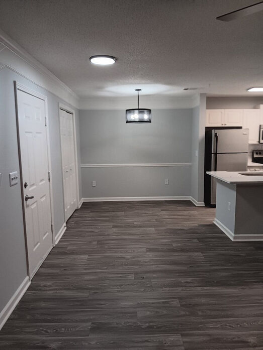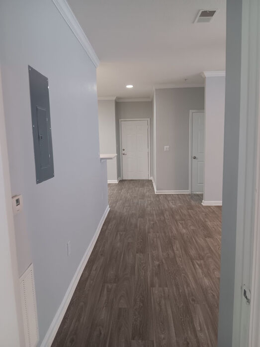 The Aspen floorplan offers an expansive 1,262‑square‑foot layout designed for comfortable living and everyday flexibility. This three‑bedroom, two‑bath apartment features an open living and dining area with modern wood‑style flooring, crown molding, neutral tones, and abundant natural light. The contemporary kitchen is equipped with stylish cabinetry, sleek countertops, a subway tile backsplash, and black appliances, along with a breakfast bar that opens to the main living space—ideal for entertaining or casual meals. All three bedrooms are generously sized with plush carpeting, ceiling fans, and ample closet space, including walk‑in closets in select rooms. The bathrooms feature clean tile tub surrounds, updated vanities, and bright lighting for a fresh, functional feel. An in‑home washer and dryer add everyday convenience, while a private patio or balcony extends your living space outdoors. The Aspen floorplan is perfect for those seeking space, comfort, and modern finishes at Lost Mountain.