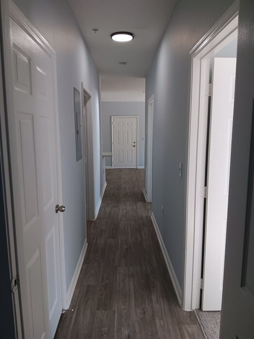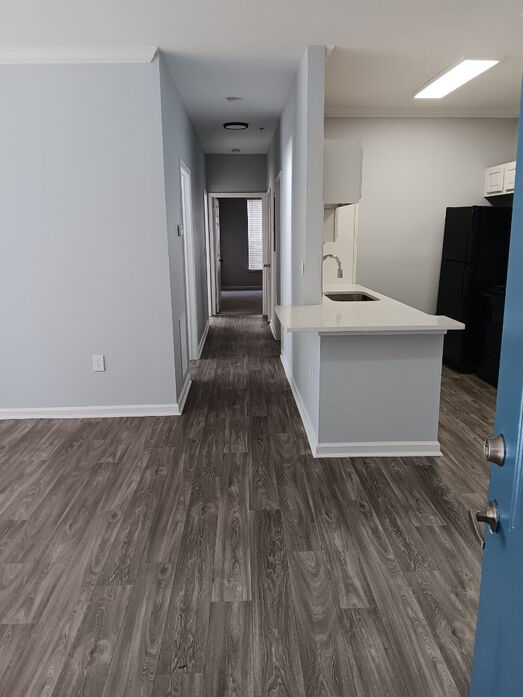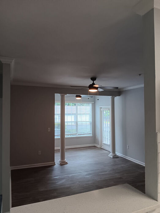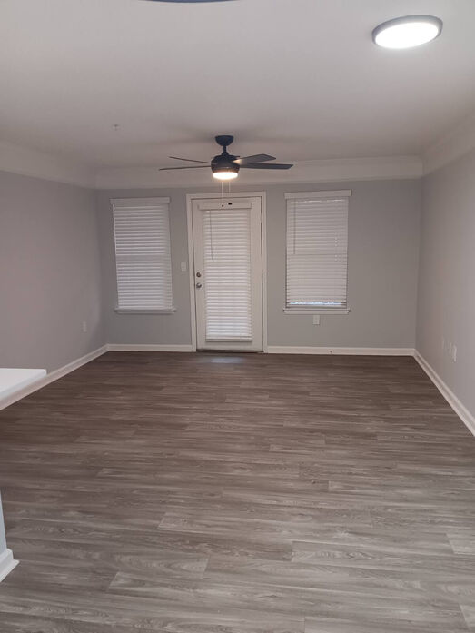 The Potomac floorplan at Lost Mountain Apartments offers a spacious and thoughtfully designed 1,013‑square‑foot layout perfect for comfortable everyday living. This two‑bedroom, two‑bath home features an open‑concept living and dining area with modern wood‑style flooring, soft gray walls, and abundant natural light. The contemporary kitchen showcases white cabinetry, sleek countertops, stainless‑steel appliances, and a breakfast bar ideal for casual dining or entertaining. Both bedrooms are generously sized with plush carpeting, ceiling fans, and ample closet space, including a walk‑in closet in the primary suite. The updated bathrooms feature clean tile surrounds, modern vanities, and bright lighting. Enjoy the convenience of an in‑home washer and dryer, a private outdoor entry, and a layout that balances openness with privacy—all nestled in the Dallas, GA Lost Mountain community.