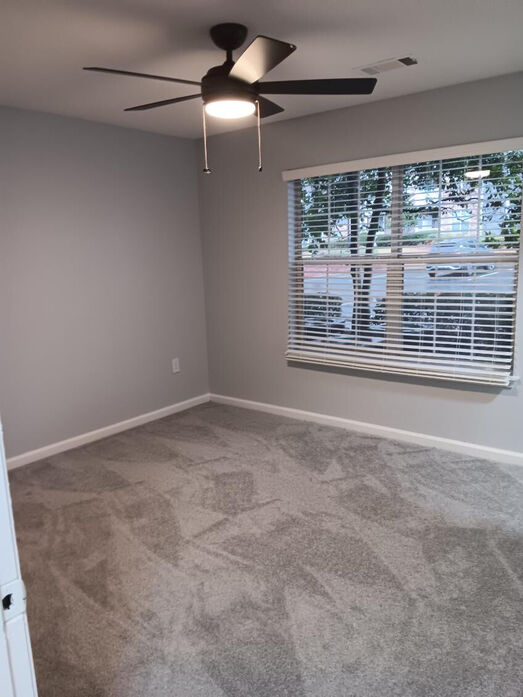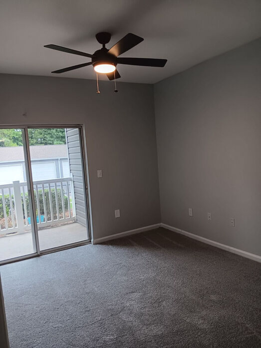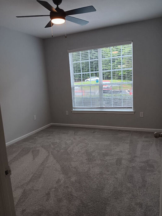 The Appalachian floorplan offers a spacious and thoughtfully designed 1,171‑square‑foot layout ideal for comfortable living and everyday flexibility. This three‑bedroom, two‑bath apartment features an open‑concept living and dining area with modern wood‑style flooring, crown molding, neutral gray tones, and large windows that bring in abundant natural light. The contemporary kitchen showcases white cabinetry, quartz‑style countertops, a classic subway tile backsplash, stainless‑steel appliances, and a breakfast bar that opens to the main living space—perfect for entertaining or casual meals. Each bedroom is generously sized with plush carpeting, ceiling fans, and ample closet space, including a spacious primary suite. The bathrooms are finished with clean tile surrounds, modern vanities, and updated lighting for a fresh, polished feel. An in‑home washer and dryer add everyday convenience, while a private patio or balcony extends your living space outdoors. The Appalachian combines space, style, and functionality in a layout designed to fit a variety of lifestyles at Lost Mountain.