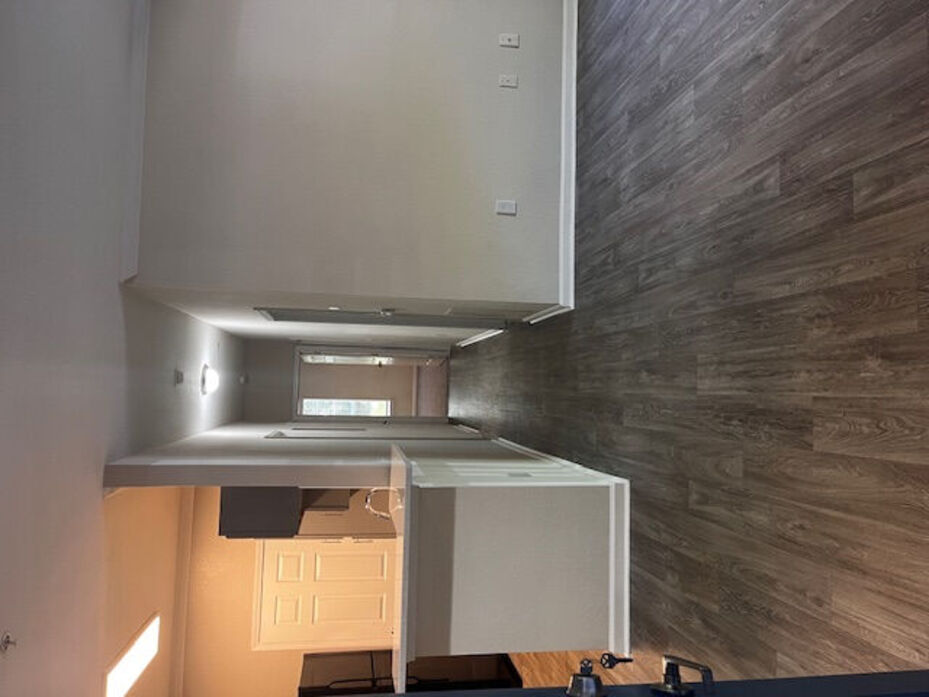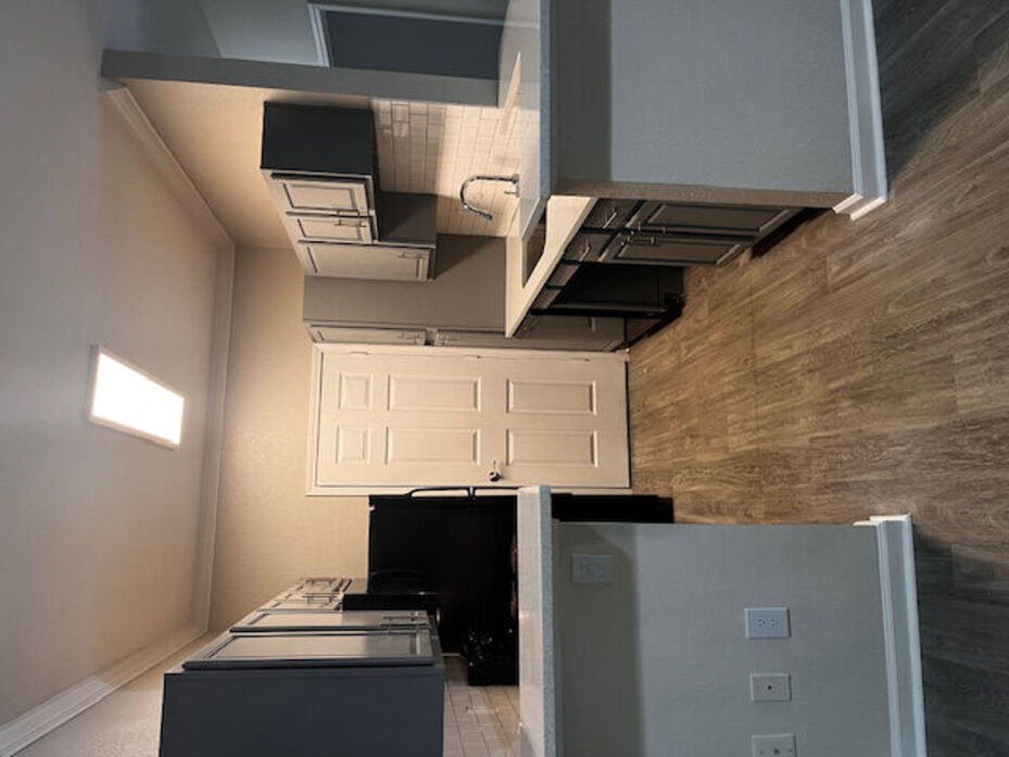 The Sugarberry floor plan offers a spacious and well‑appointed 1 bedroom, 1 bathroom layout with 780 square feet of thoughtfully designed living space. This home features an open living and dining area with wood‑style flooring, modern lighting, and a ceiling fan that enhances comfort and airflow. Large windows and a private patio or balcony bring in natural light and extend the living space outdoors. The kitchen is updated (in renovated plans) with white cabinetry, quartz‑style countertops, a classic subway‑tile backsplash, and stainless‑steel appliances, complemented by a functional breakfast bar that opens to the main living area. The bedroom provides a comfortable retreat with plush carpeting, generous closet space, and a ceiling fan for added comfort. The bathroom showcases clean, contemporary finishes including a full tub/shower combination with tiled surround and a modern vanity with ample storage. A dedicated laundry area with washer and dryer completes this inviting and functional apartment home.
